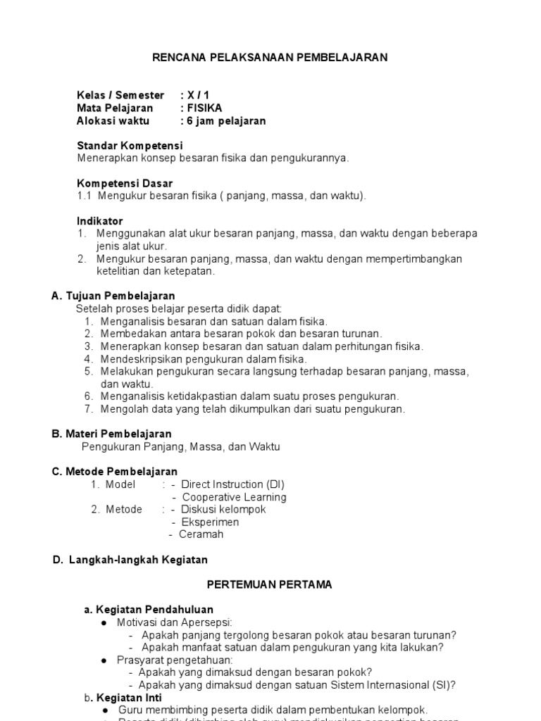 Rpp fisika 1 lembar kelas x. Check spelling or type a new query. We did not find results for: Maybe you would like to learn more about one of these?